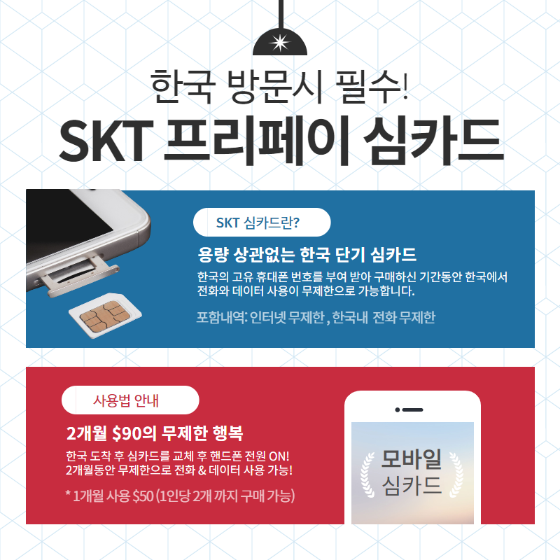 무제한 한국 사용 SKT 심 카드 판매 - ABC 여행사